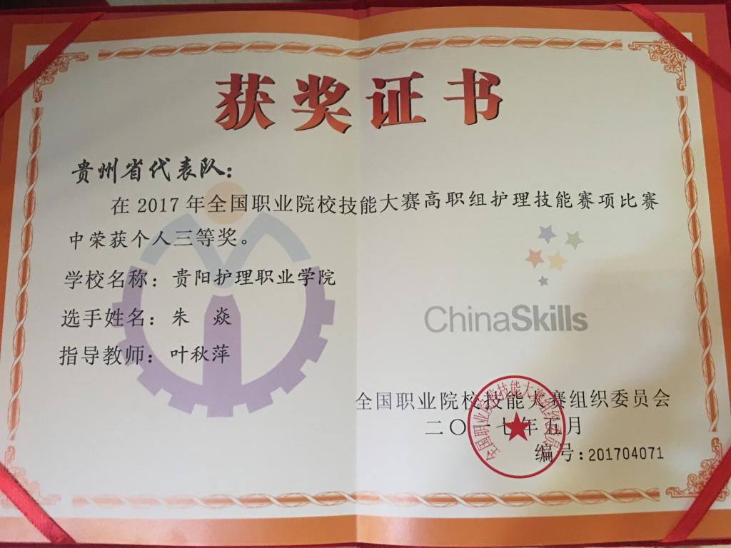 荣获2017年全国职业院校护理技能大赛三等奖,实现贵州零突破