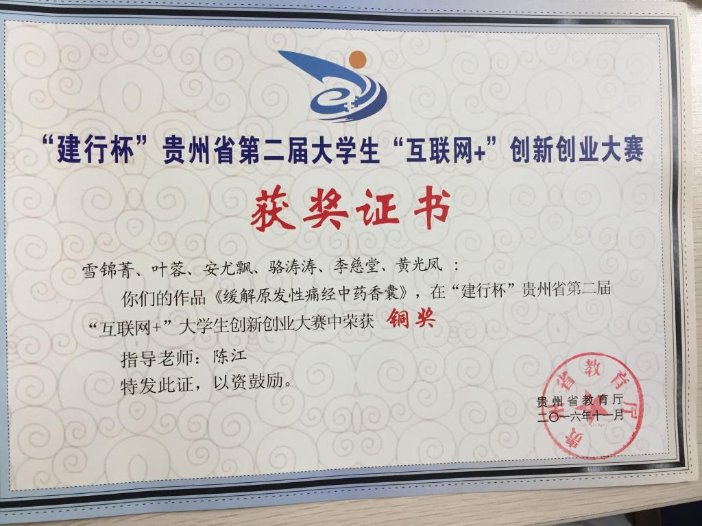 荣获“建行杯”贵州省第二届大学生“互联网+” 大赛铜奖