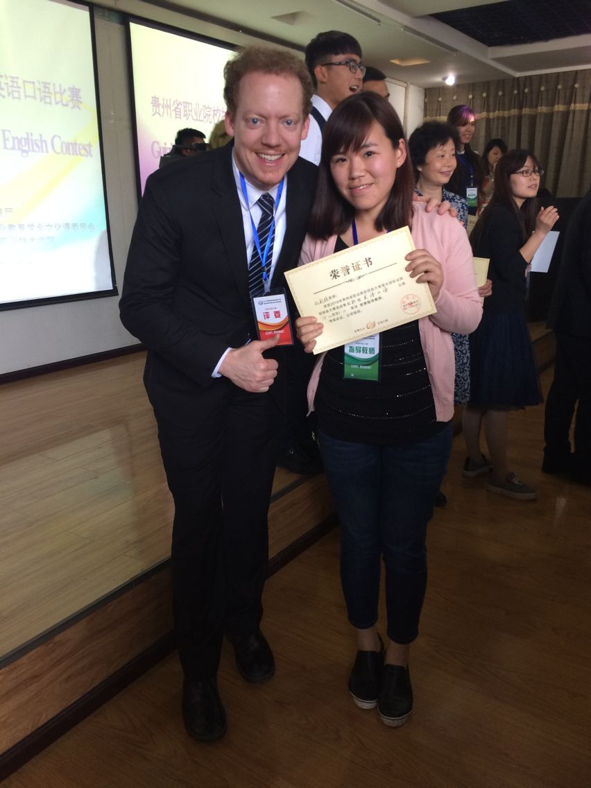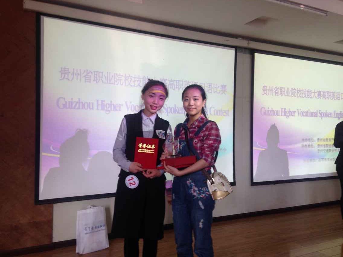 4月16日,2016年贵州省职业院校技能大赛暨全国职业院校技能大赛英语口语大赛正式开赛,本次比赛共有来自全省23个职业院校的46名选手参加。我院两名学生代表参赛,由文化基础部英语教研室双利娟老师带队。经过激烈竞争,助计14310班史杰同学与涉外护理14309班鈡琳同学分别获得了第二名与第三名的好成绩,再次为我校争光添彩。