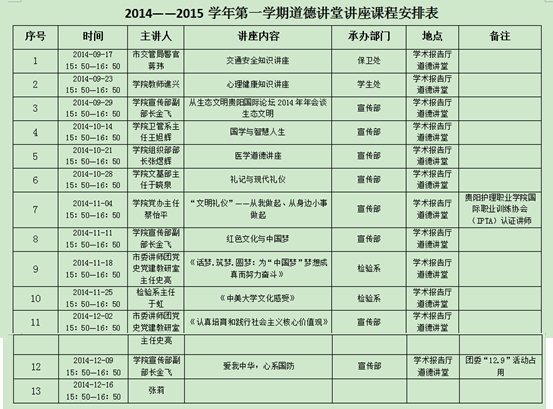2014-2015第一学期道德讲堂讲座课程安排表