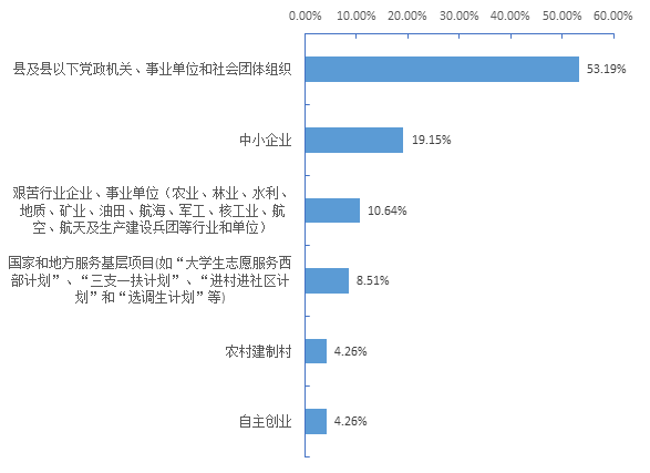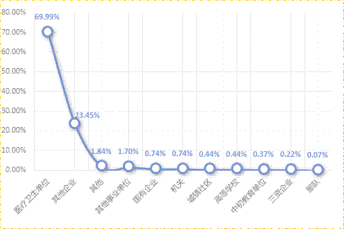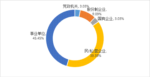 用人单位的单位性质主要是事业单位和民(私)营企业,分别占比45.45%、39.39%。股份制企业、国有企业和党政机关的比例相对较低。