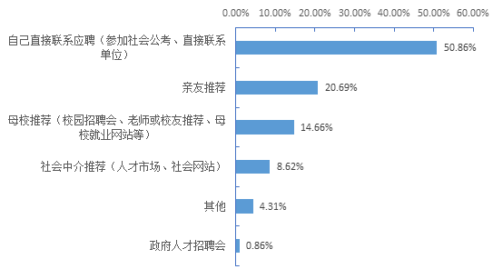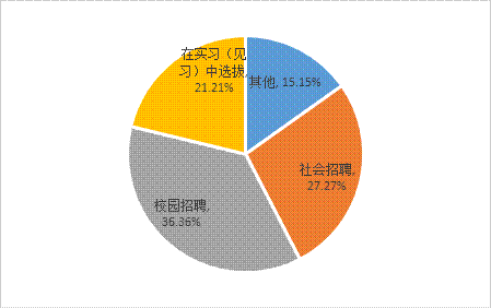 用人单位招聘毕业生主要通过校园招聘、社会招聘和在实习(见习)中选拔,其中占比最高的是通过校园招聘(36.36%)。