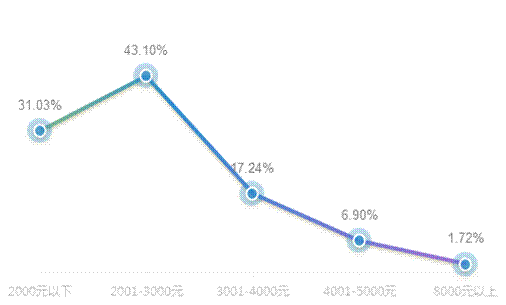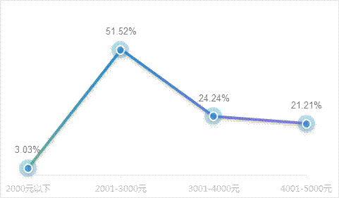 用人单位招聘毕业生的薪资待遇基本集中在2001-3000元,占51.52%, 3001-4000元与4001-500元的占比相差不大。