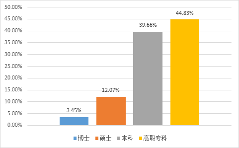 用人单位对本科和高职两个学历层次的需求最大,硕士和博士的需求量较低。